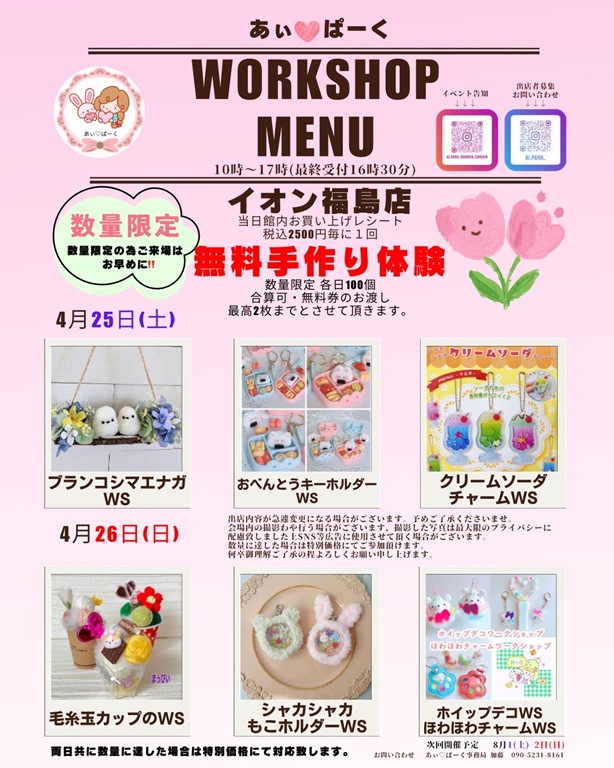 ・25日(土)→あぃ♡ぱーく/10:00~17:00/イオン福島店/おべんとうキーホルダーWS