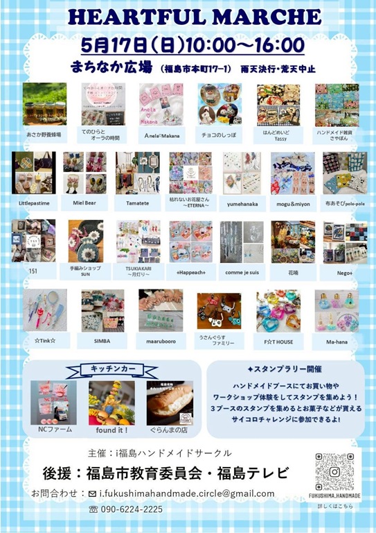 ・19日(日)→スマイルアップマルシェ/10:00~16:00/郡山市ヨークパーク/キャンディバッグ&おべんとうキーホルダーWS