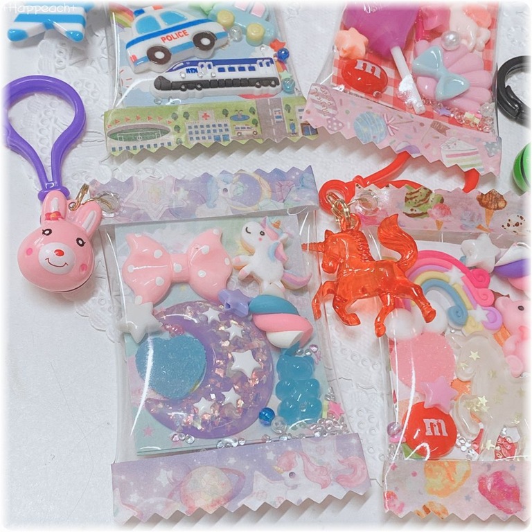 好きなデコパーツをいっぱい詰めてカワイイキーホルダーを作りましょう☆