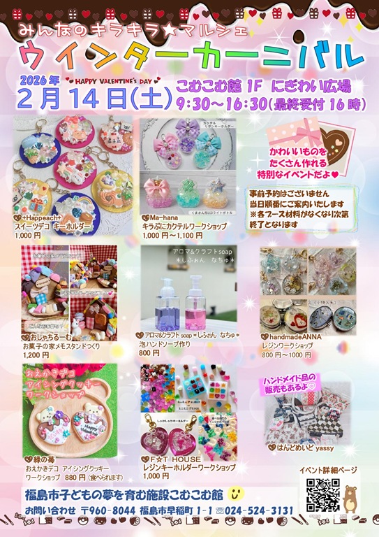 ・14日(土)→◆みんなのキラキラ★マルシェ ウインターカーニバル2026◆/9:30~16:00/こむこむ館1F/スイーツデコのキーホルダーWS
