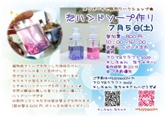 6/17 ハッピーチ店内イベント アロマ&クラフトsoap *しふぉん なちゅ*さんの泡ハンドソープ作り(7/5)開催★ご予約受付中♡
