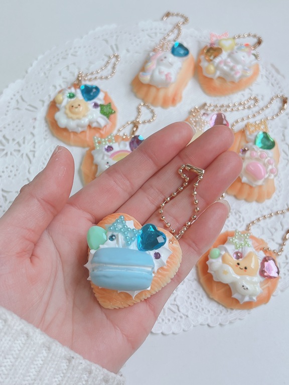 ミニサイズのクッキーキーホルダーにスイーツデコレーションをします