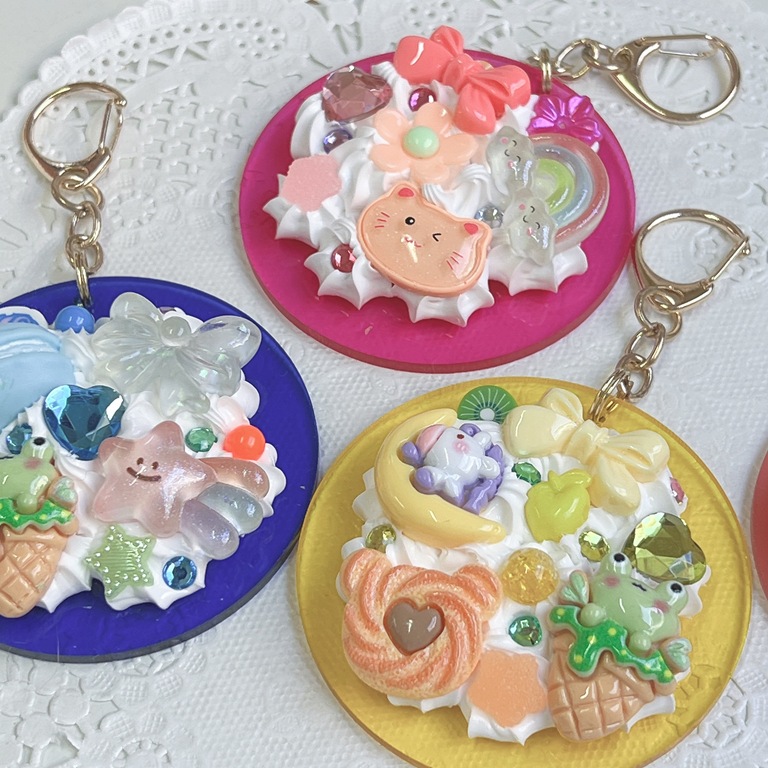 キーホルダーの色とデコパーツを選んで自由に作ります!!
